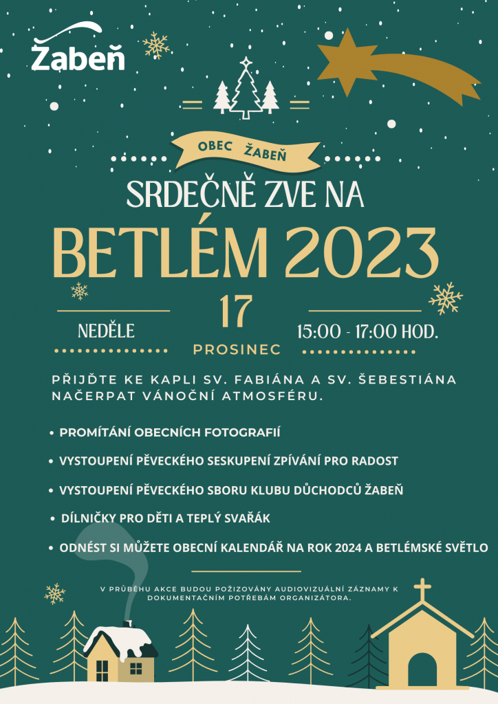 Obec Žabeň srdečně zve 17. prosince 2023