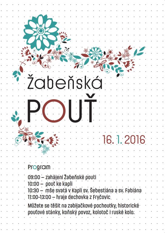 Přijměte milé pozvání na II. ročník Obecního Bálu a samozřejmě také na Žabeňskou pouť. Obě akce se konají 16. ledna a kdo si pamatuje první ročník, musí uznat, že se obě akce moc povedly. Jen Žabeň si může dovolit mít pouť v lednu!!! Pro děti jsme ještě přidali jeden kolotoč navíc - ruské kolo a pro dospěláky samozřejmě množství stánků s občerstvením a jiným "harampádím" Emotikona smile. A co zabijačka?... Nechte se překvapit.
