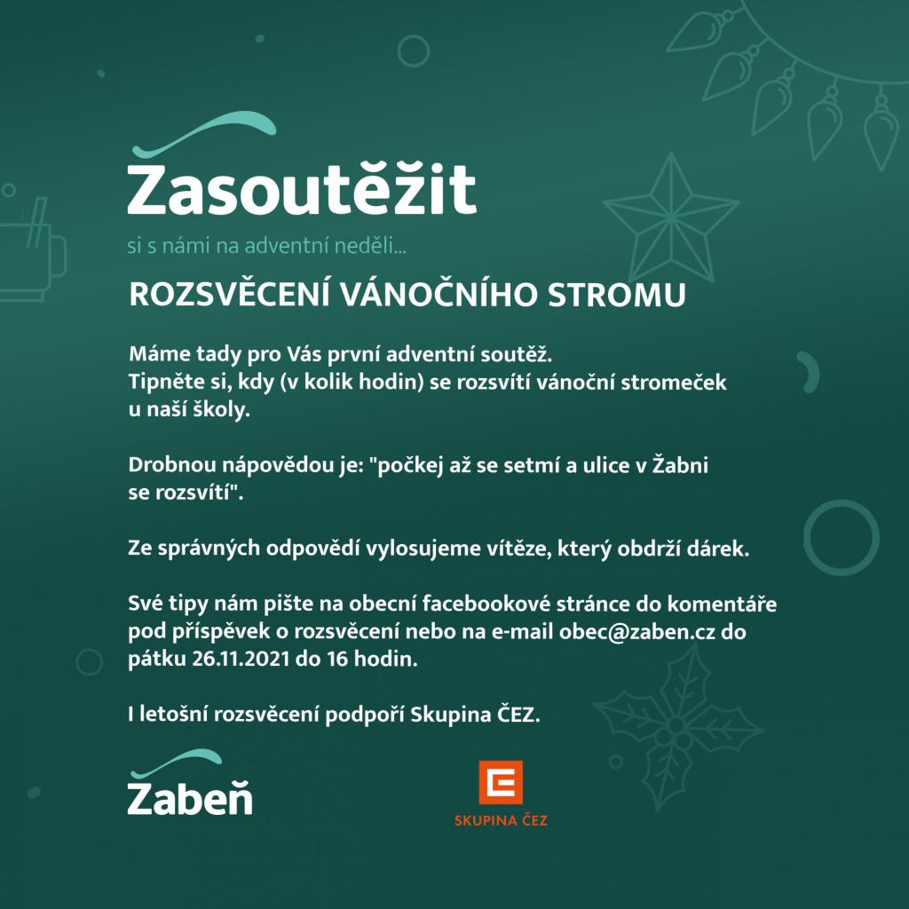 Své tipy nám pište na obecní facebookové stránce do komentáře pod příspěvek o rozsvěcení nebo na e-mail obec@zaben.cz do pátku 26.11.2021 do 16 hodin.
