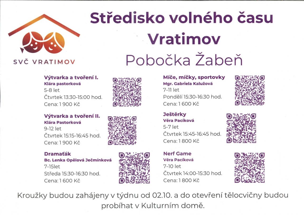Kroužky budu zahájeny v týdnu od 2. října a do otevření tělocvičny budou pobíhat v Kulturním domě.