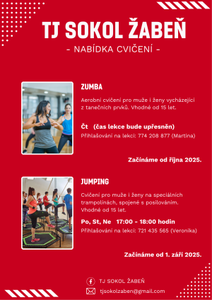 TJ Sokol Žabeň Vás srdečně zve na Jumping Merry Christmas: Christmas party, která se uskuteční v sobotu 14. prosince 2024 od 16 hodin v nové sportovní hale v Žabni.